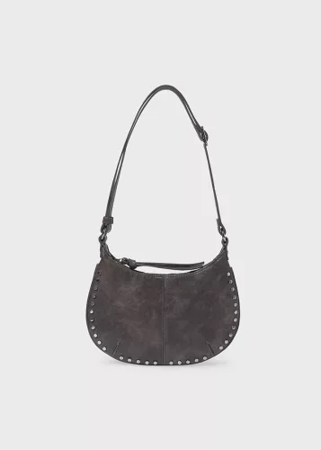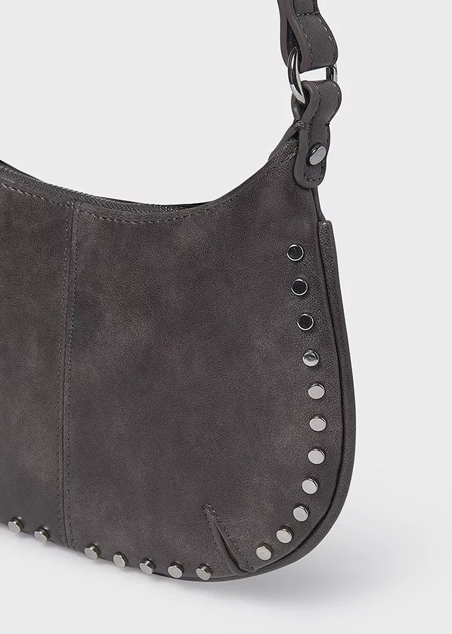 Stílusos, félhold formájú kislány válltáska modern szegecses díszítéssel. Praktikus és divatos kiegészítő a mindennapokra és alkalmakra. Állítható pántjának köszönhetően kényelmes viselet. Letisztult, trendi darab, amely feldobja az outfitet.