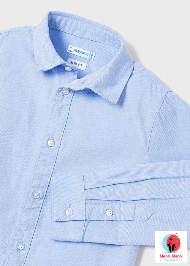 Ez az ing a világoskék árnyalatával eleganciát sugall, így tökéletes választás üzleti találkozókra, vacsorákra vagy hétköznapi viseletként is. A klasszikus szabás és a finom részletek, mint például a gombok és a mandzsetta, időtálló stílust kölcsönöznek.