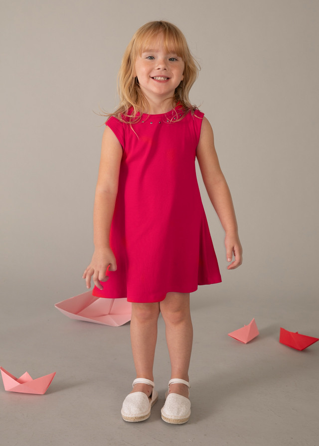 Letisztult, mégis különleges Mayoral kislány ruha élénk piros színben. A nyakrésznél elhelyezett apró díszítés elegáns megjelenést ad. Kényelmes, puha pamut anyaga egész napos viseletre is ideális. Tökéletes választás hétköznapra és alkalomra is.