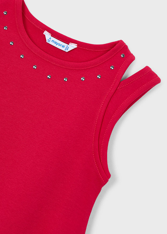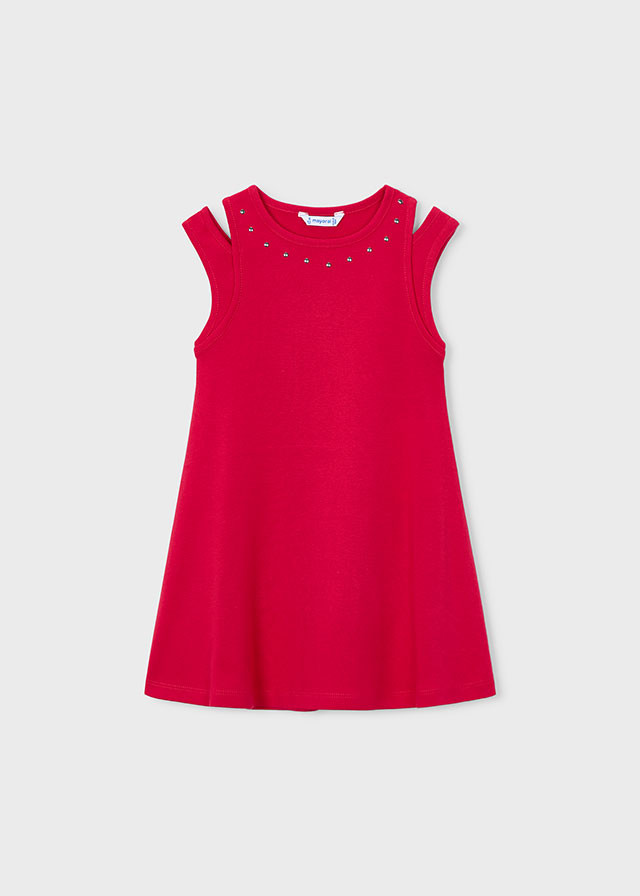 Mayoral kislány ruha – élénk piros, strasszos nyakrésszel