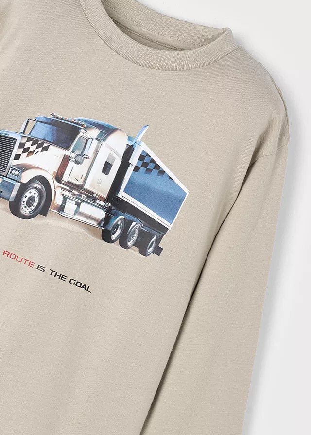 Mayoral fiú hosszú ujjú póló – bézsbarna (visón) szín, kamion mintával