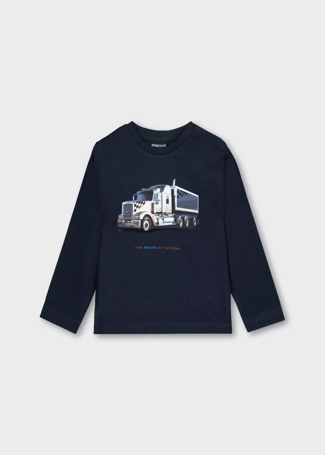 Mayoral fiú hosszú ujjú póló – tengerészkék (Marino) szín, kamion mintával