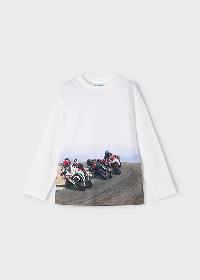 "Légy stílusos és energikus minden nap – válaszd a Mayoral motorkerékpár mintás fiú felsőt, a tökéletes gyerekruhát kalandos napokra!"