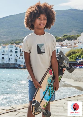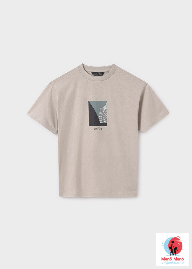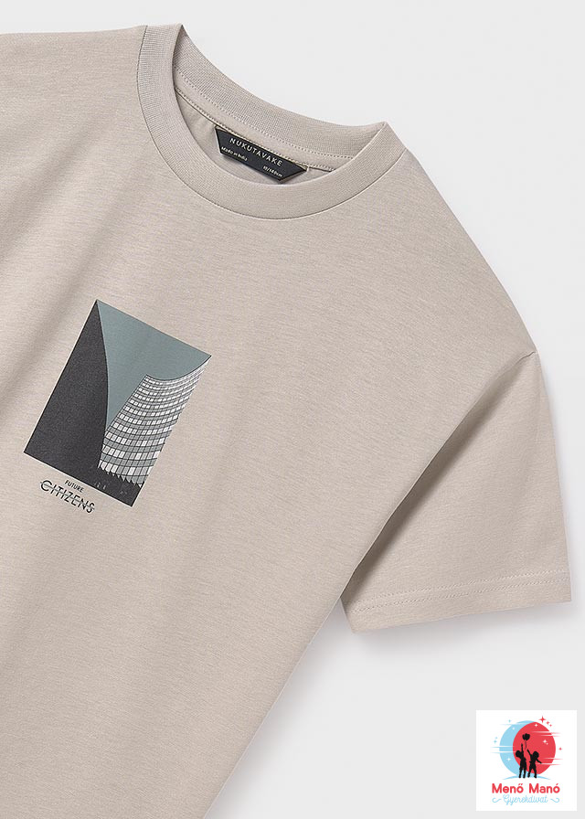 Mayoral bézs színű póló stílusos és sokoldalú modell a mindennapi ruhatárhoz. A finom építészeti nyomatok modern hatást adnak, míg a puha pamut anyag egész napos kényelmet biztosít. Ideális választás a divatos megjelenés megteremtéséhez farmerrel vagy rövidnadrággal párosítva.