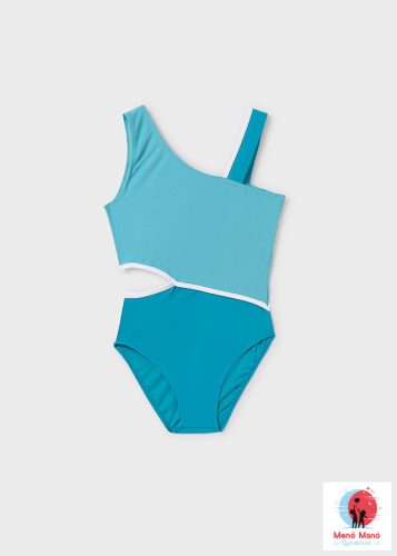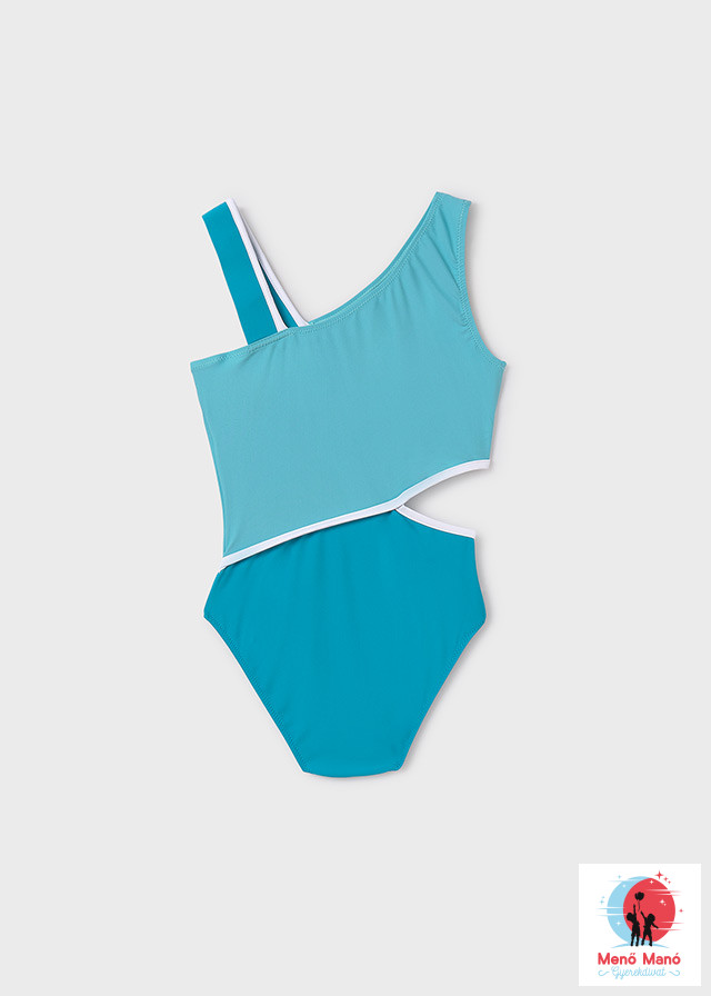 Ez a Mayoral stílusos kék kivágott fürdőruha lányoknak tökéletes választás strandra vagy a tengerparton eltöltött vidám napokhoz. A divatos kivágott dizájn a divatot és a funkciót egyaránt ötvözi. Kényelmes, rugalmas anyagból készült, amely biztosítja a mozgás szabadságát, miközben megfelelő illeszkedést kínál. Remek kiegészítője fürdőruha kollekciójának!
