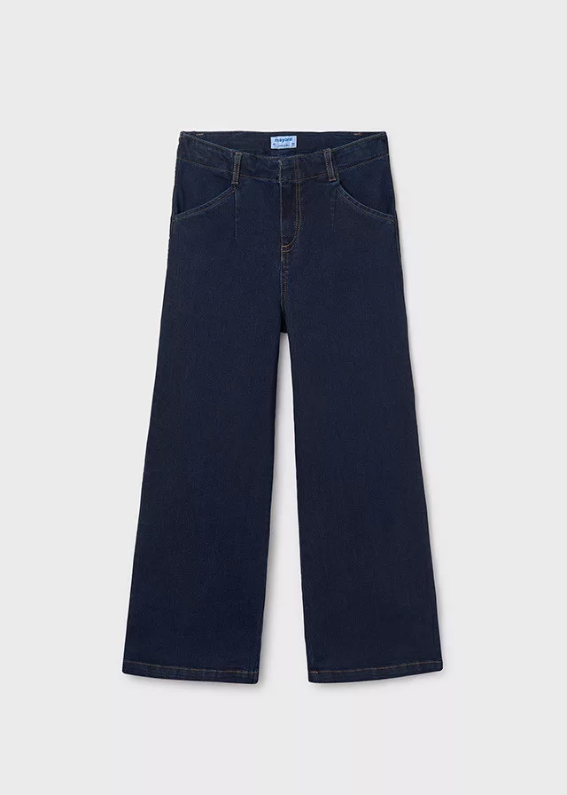 Divatos és kényelmes Mayoral lány bővülő szárú farmernadrág tejano super oscuro (nagyon sötét) árnyalatban. A loose fit (laza szabás) trendi, mégis kényelmes megjelenést biztosít. Puha, tartós anyaga egész napos komfortot nyújt. Ideális választás iskolába, hétköznapi outfitekhez és városi programokhoz.