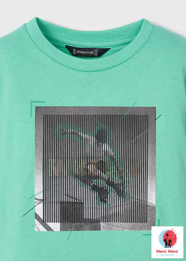 A kis görkorcsolyázója imádni fogja ezt a pólót! A modern, dinamikus nyomat 3D effektussal egyedi karaktert kölcsönöz neki. Stílusos választás azoknak a fiúknak, akik szeretik a mozgást és a sportos érzelmeket!