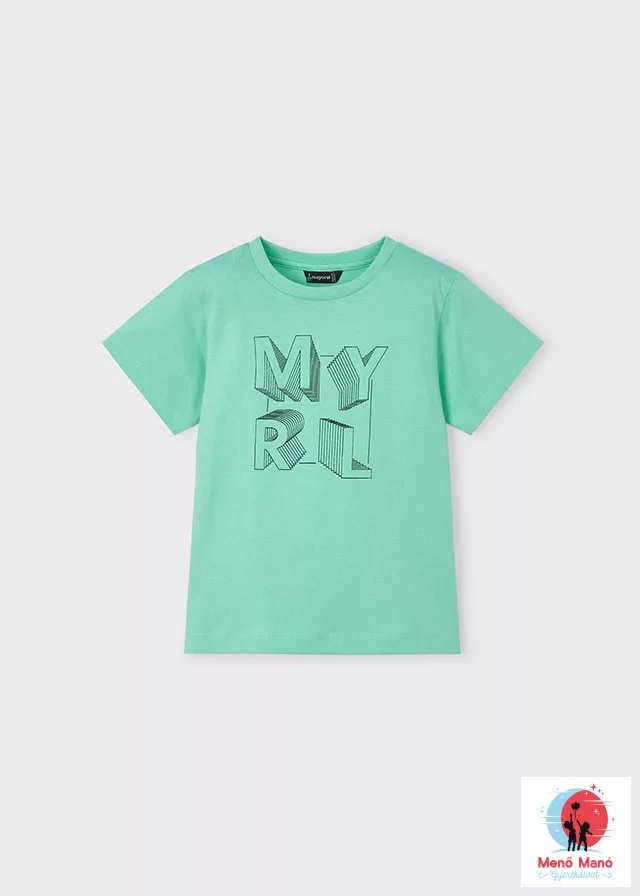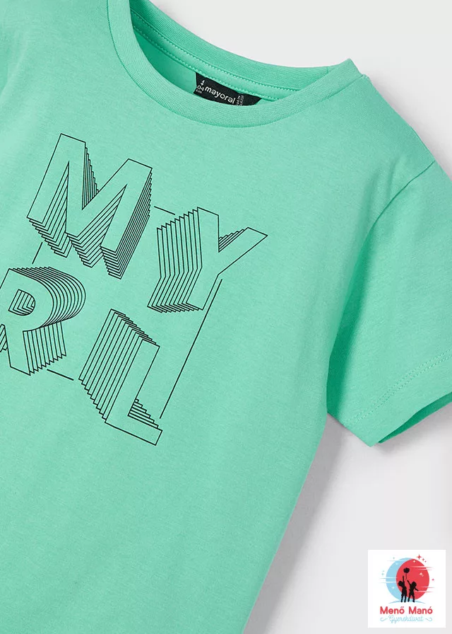 Stílusos fiú póló rövid ujjal, frissítő mentazöld színben. Elejét modern MYRL grafikai nyomat díszíti, mely egyedi megjelenést kölcsönöz a pólónak. Puha és légáteresztő pamutból készült a maximális viselési kényelem érdekében. Ideális mindennapi viseletnek iskolába és szabadidőbe.