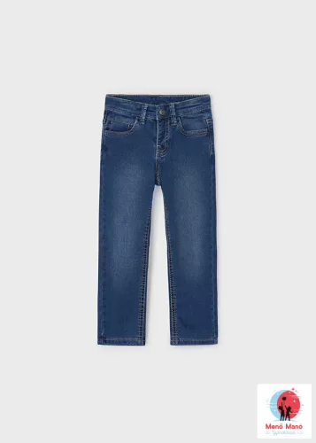 Stílusos és kényelmes fiú farmer modern kék árnyalatban, ideális mindennapi viselethez. A klasszikus, egyenes szárú szabásnak köszönhetően tökéletesen illeszkednek és maximális kényelmet biztosítanak. A praktikus zsebek elöl és hátul funkcionális megjelenést kölcsönöznek a nadrágnak. A rugalmas derékpánt állítási lehetőségekkel tökéletes illeszkedést biztosít.