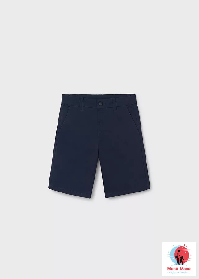 Mayoral sötétkék rövidnadrág fiúknak. Puha pamutból készült, négy zsebes kialakítású, kényelmes, állítható derékkal és rejtett cipzárral, gombbal zárható.