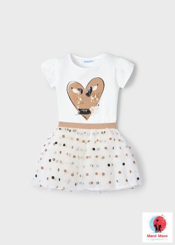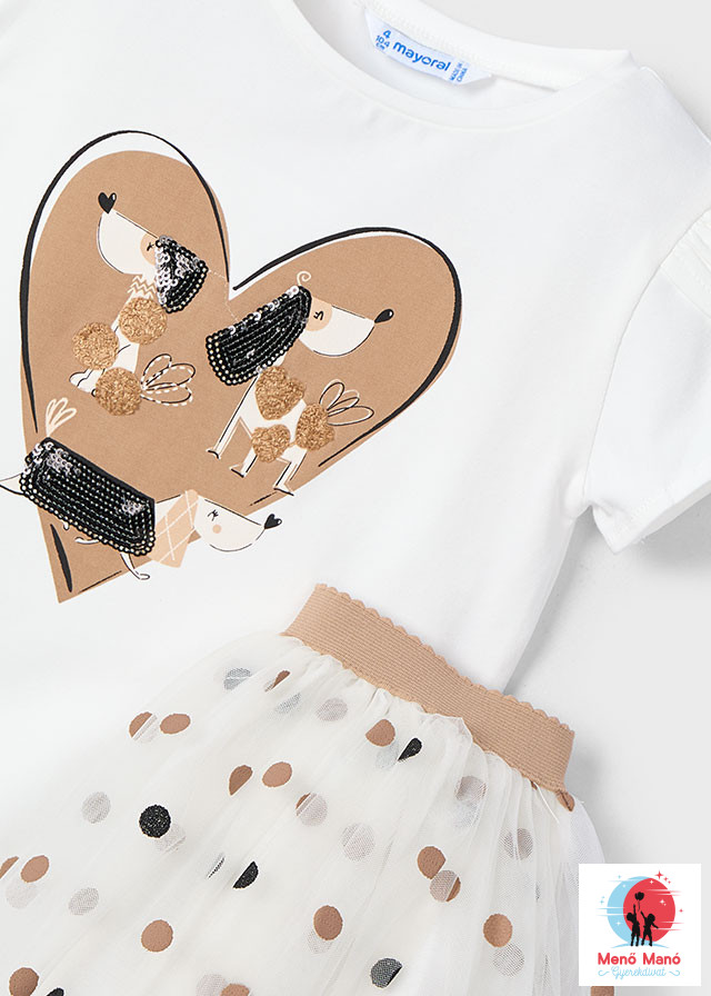 Mayoral kiskutyás póló és pöttyes szoknya szett Natural